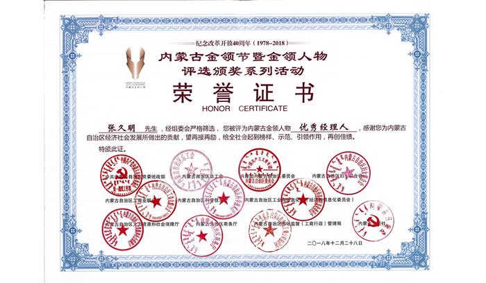 內(nèi)蒙古金領(lǐng)節(jié)暨金領(lǐng)人物評(píng)選頒獎(jiǎng)系列活動(dòng)榮譽(yù)證書(shū)