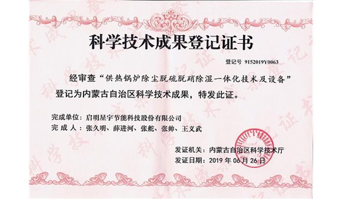 零排科技成果登記證書